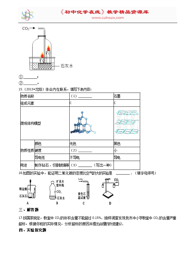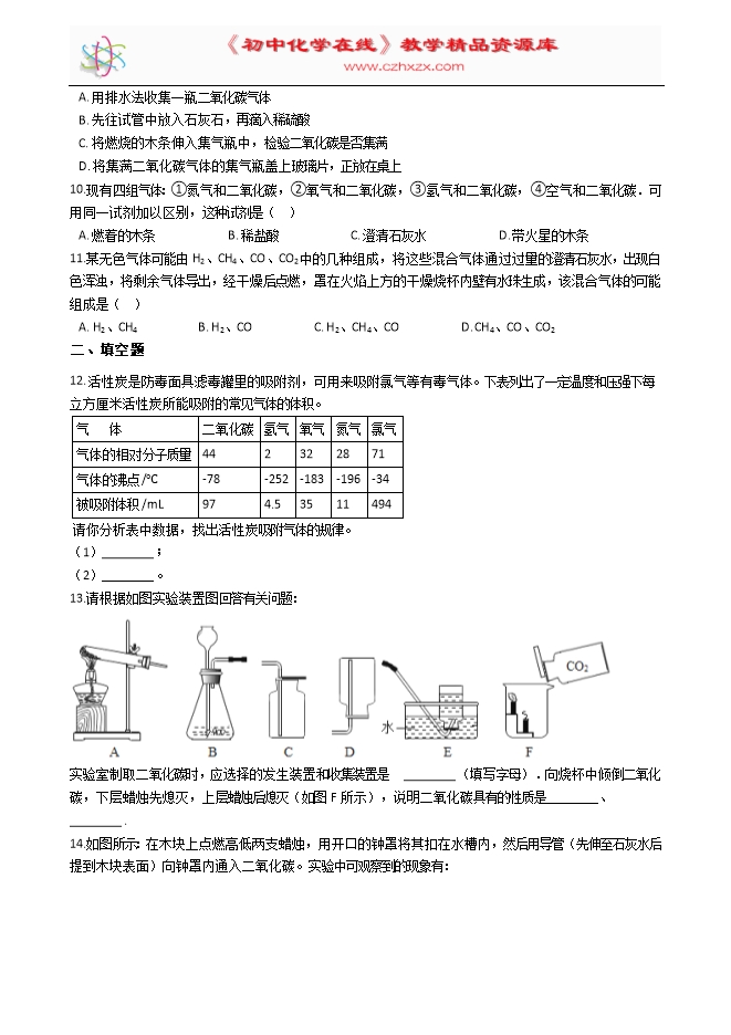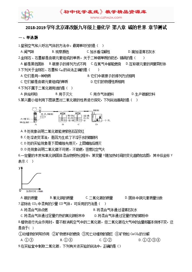 【内容简介】2018-2019学年北京课改版九年级上册化学《第八章 碳的世界》 章节测试(word版含答案解析)