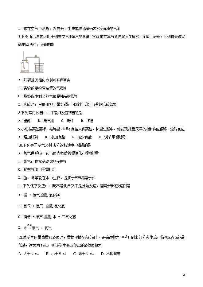所属专辑: 《2019届九年级上学期10月份月考化学试题汇总》专辑