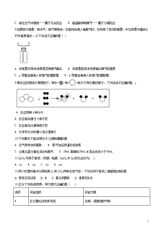 所属专辑: 《2019届九年级上学期10月份月考化学试题汇总》专辑