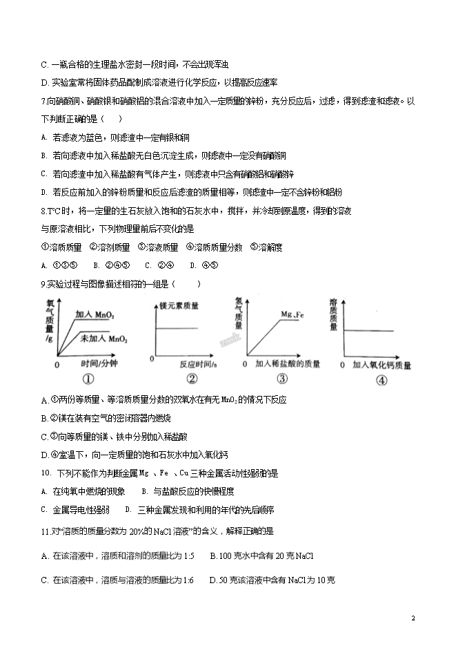 所属专辑: 《2019届九年级上学期10月份月考化学试题汇总》专辑