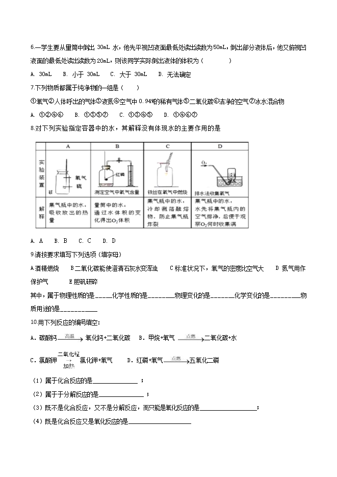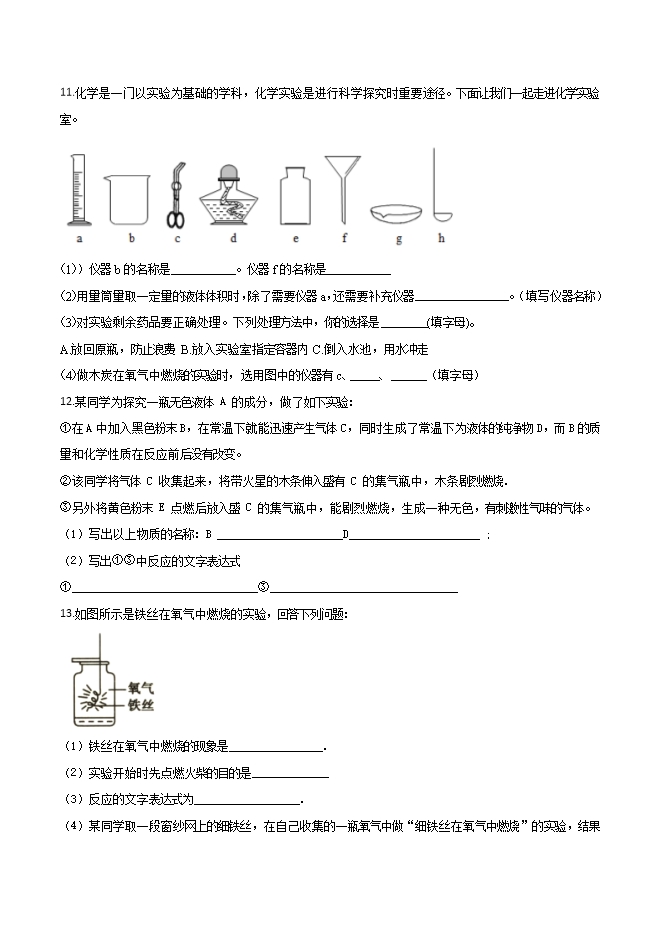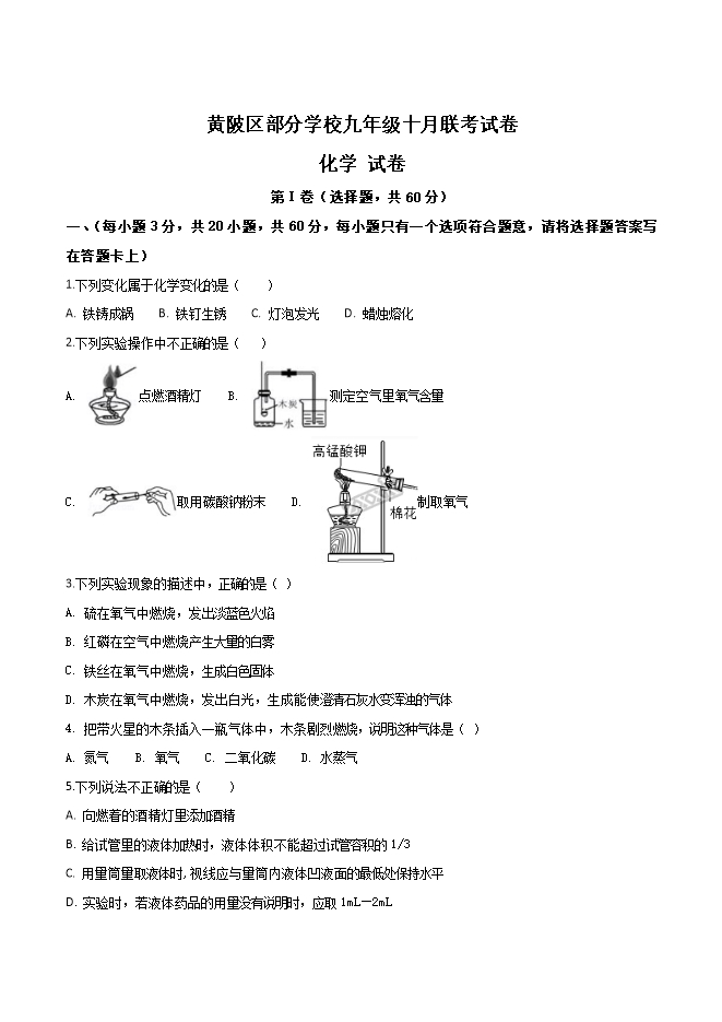 【内容简介】湖北省武汉市黄陂区部分学校2019届九年级上学期10月月考理科综合化学试题(word版无答案)