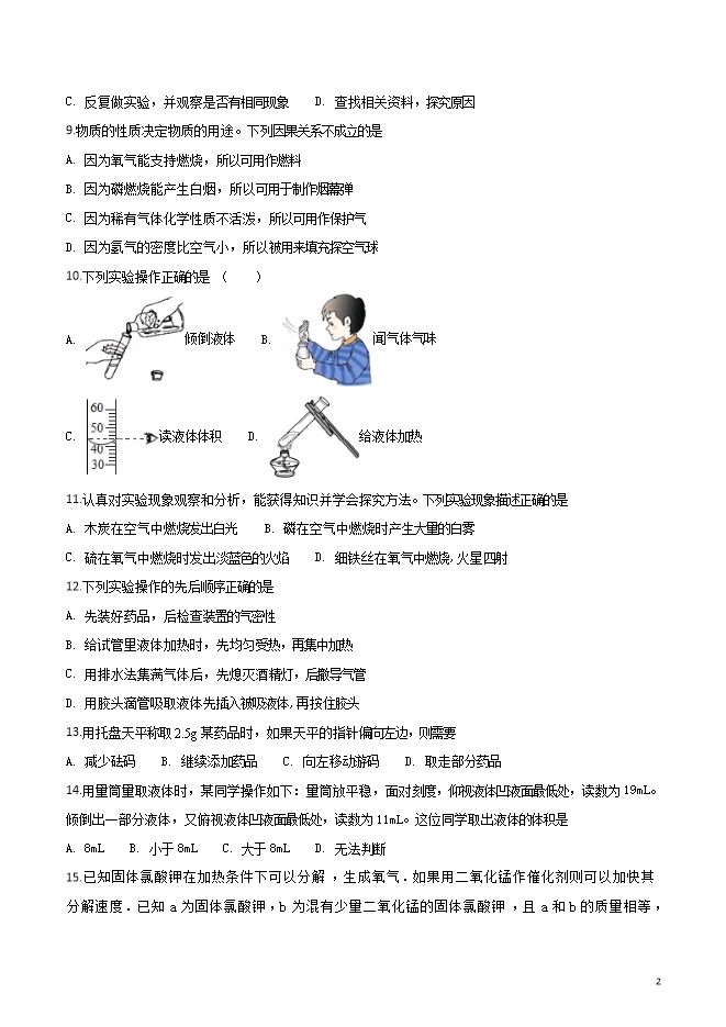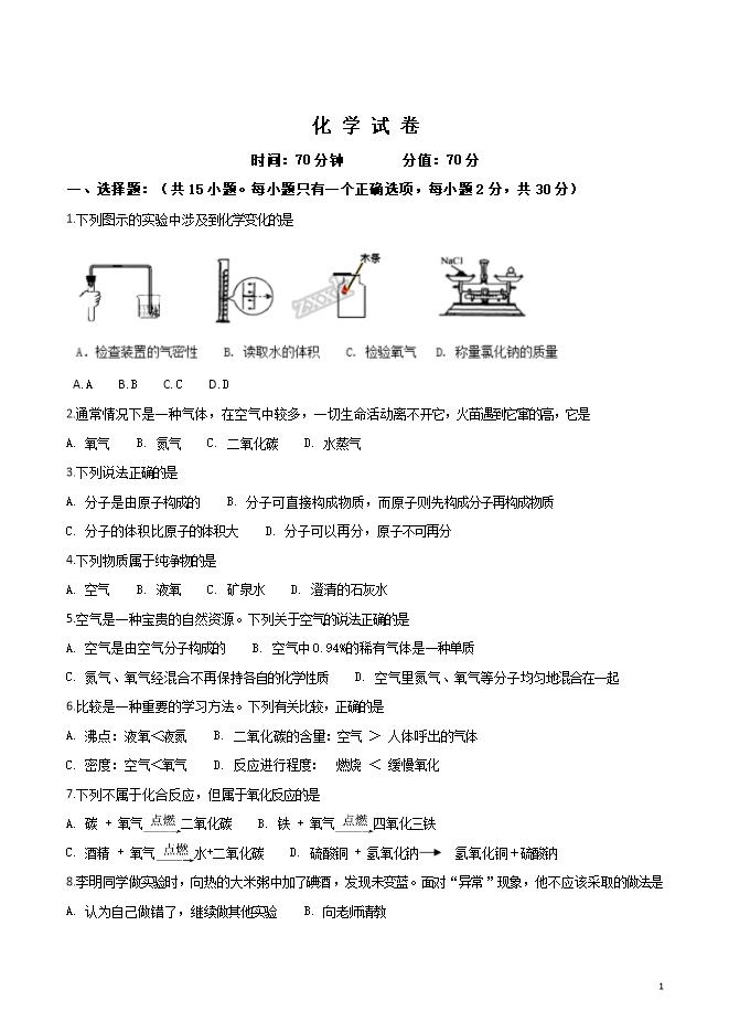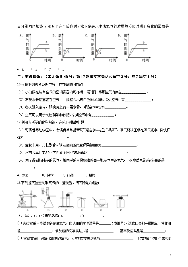 【内容简介】江苏省东台市五烈镇学校2019届九年级10月份月考化学试题(word版无答案)