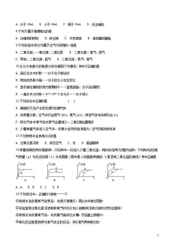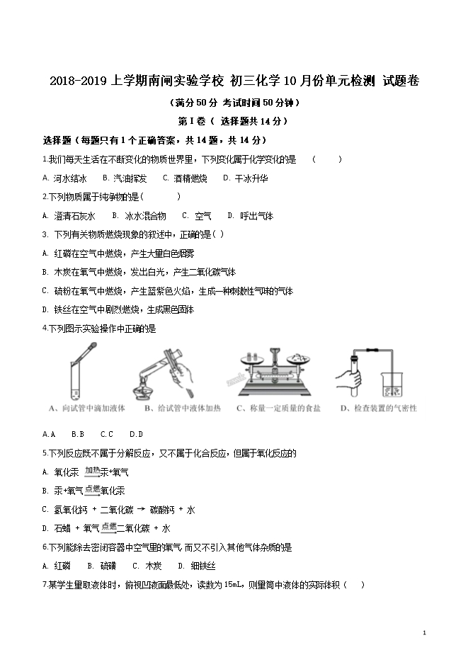 【内容简介】江苏省江阴南闸实验学校2018届九年级上学期10月月考化学试题(word版无答案)