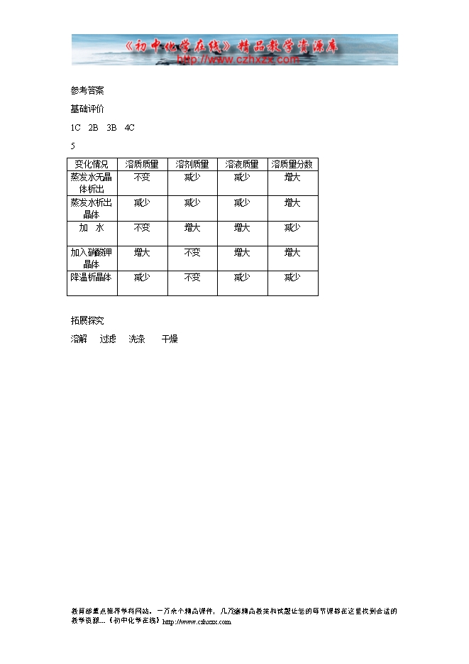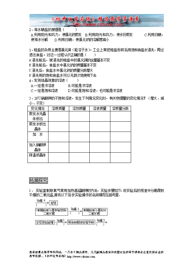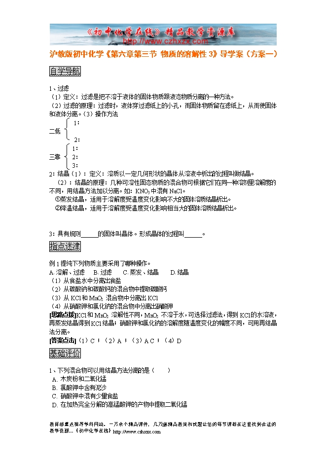 沪教版初中化学《第六章第三节 物质的溶解性3》导学案(方案一)