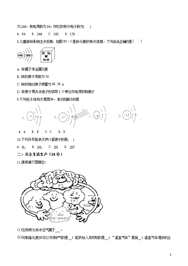 所属专辑: 《2019届九年级上学期10月份月考化学试题汇总》专辑