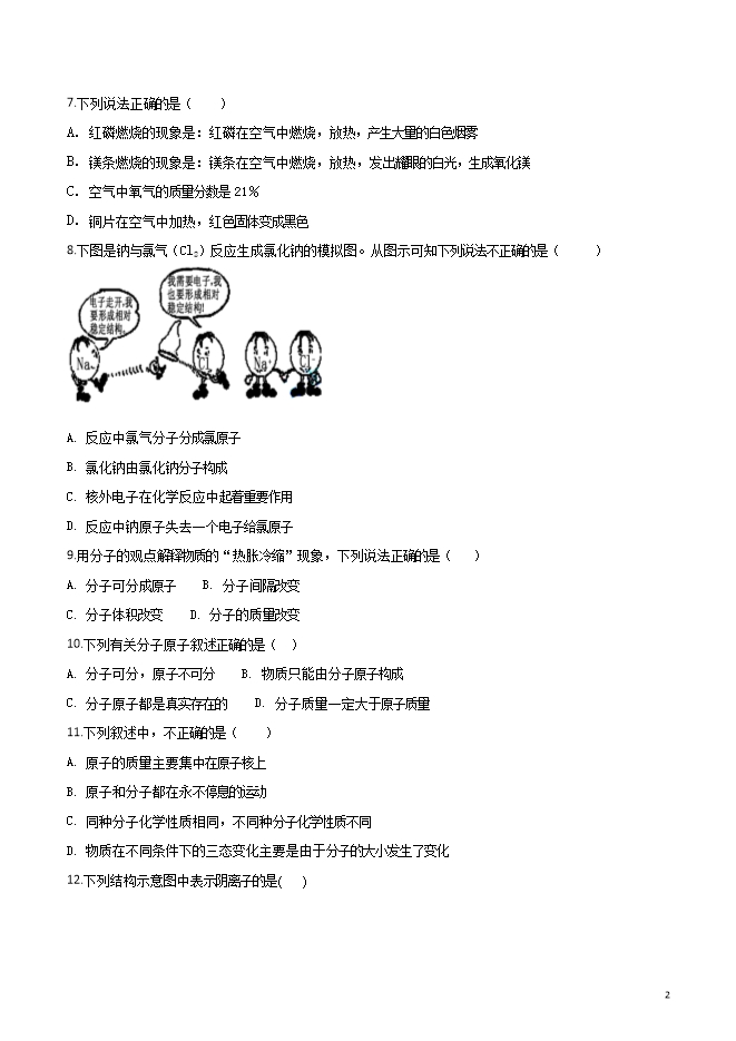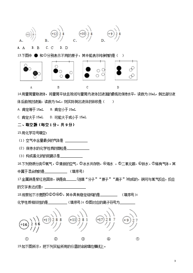 所属专辑: 《2019届九年级上学期10月份月考化学试题汇总》专辑