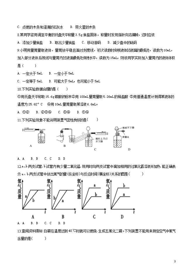 所属专辑: 《2019届九年级上学期10月份月考化学试题汇总》专辑