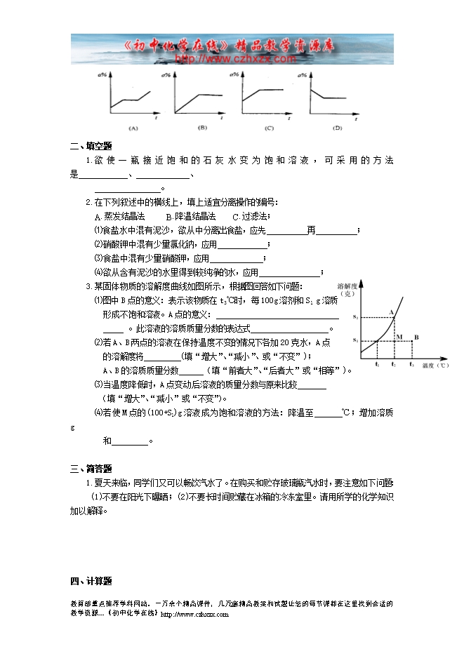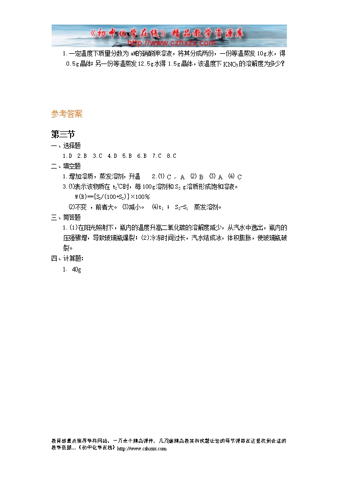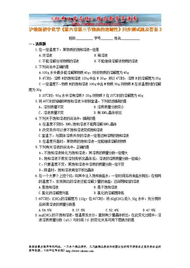 沪教版初中化学《第六章第三节 物质的溶解性》同步测试题及答案2