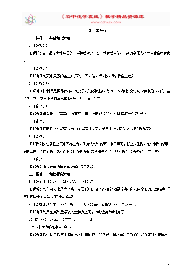 人教版九年级化学下册《第八单元金属和金属材料课题3 金属资源的利用和保护(第2课时)》一课一练(word版含答案解析)