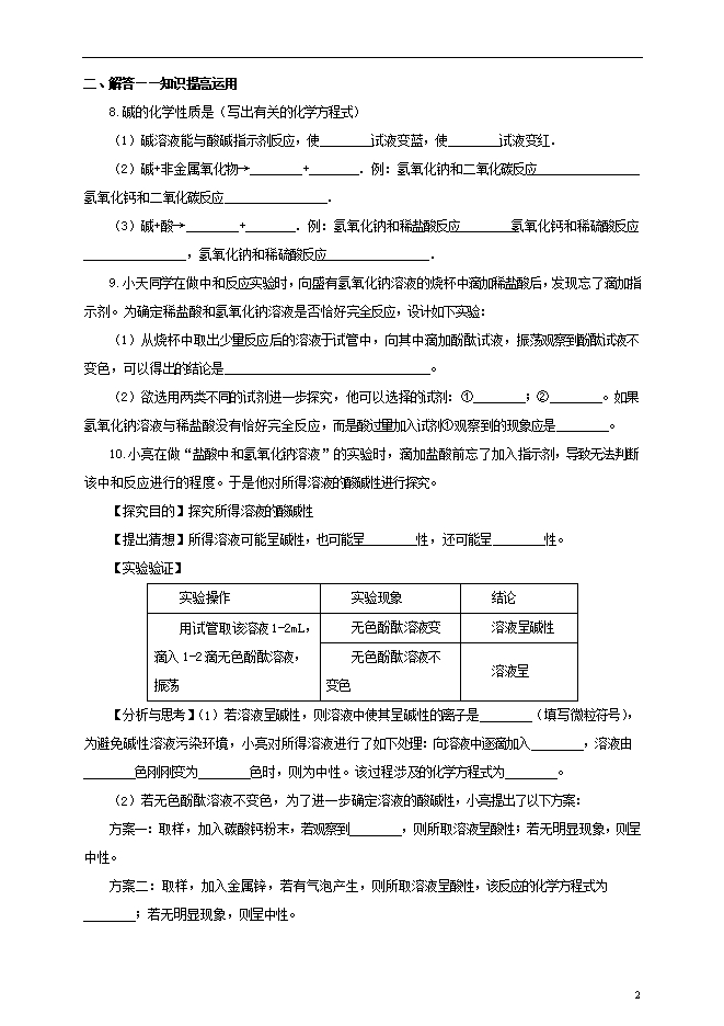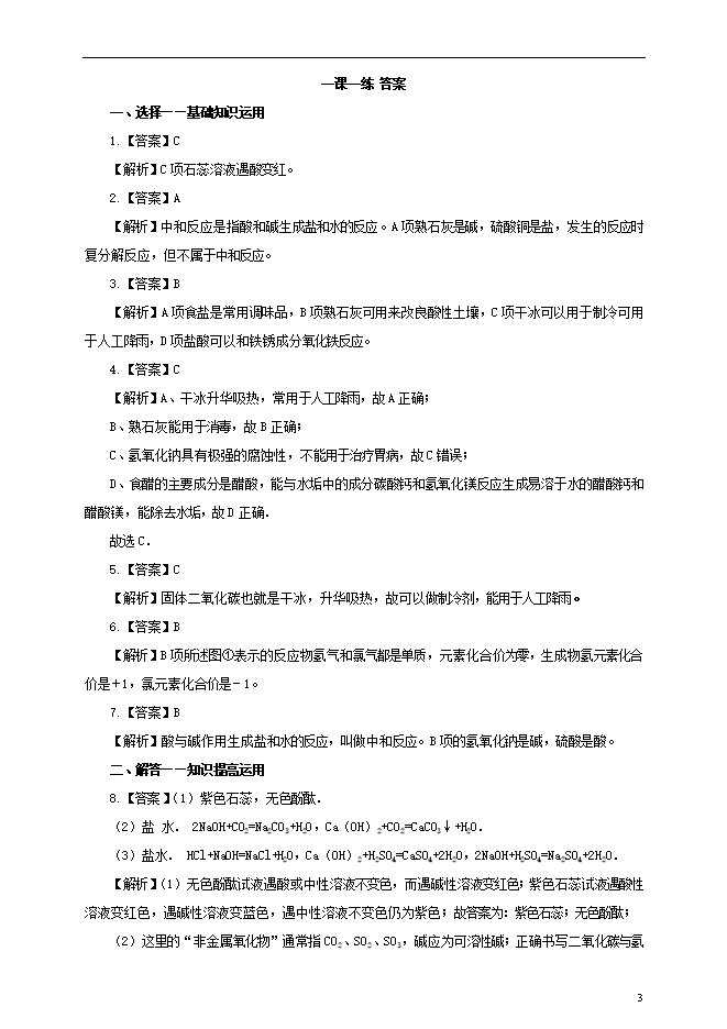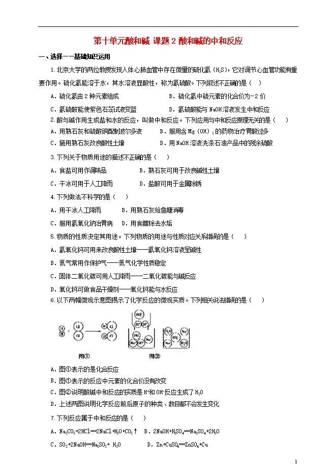 【内容简介】人教版九年级化学下册《第十单元酸和碱课题2 酸和碱的中和反应(第1课时)》一课一练(word版含答案解析)