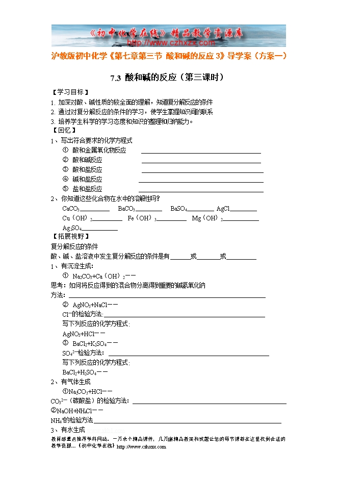 沪教版初中化学《第七章 酸和碱的反应3》导学案(旧方案一)