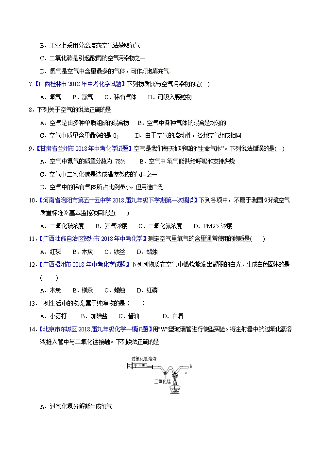 2019届人教版九年级化学《第二单元 我们周围的空气》同步单元双基双测“AB”卷(B卷)(word版无答案)