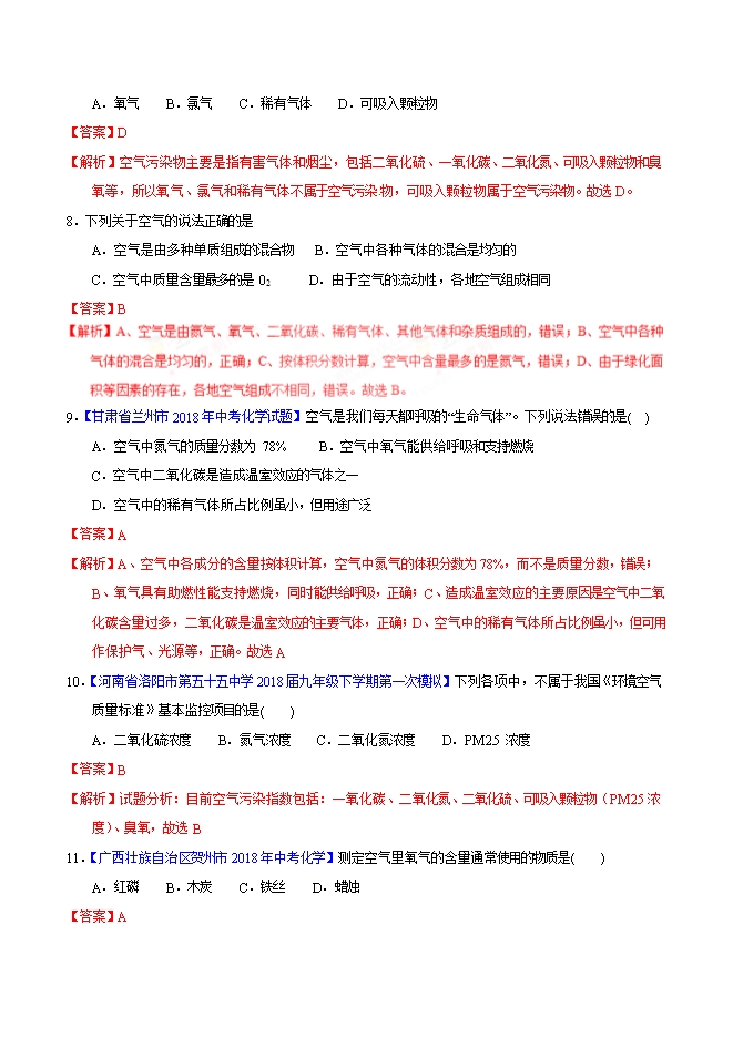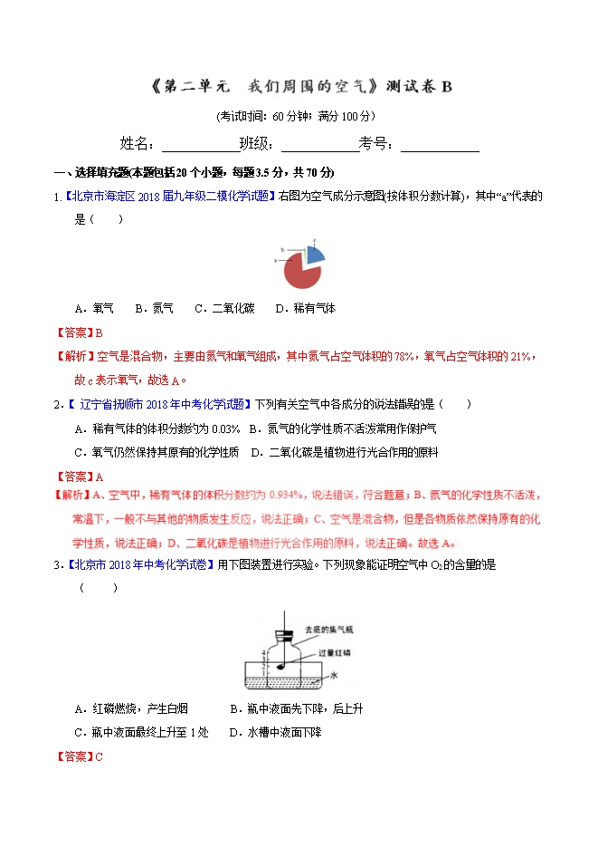 【内容简介】2019届人教版九年级化学《第二单元 我们周围的空气》同步单元双基双测“AB”卷(B卷)(word版含答案解析)