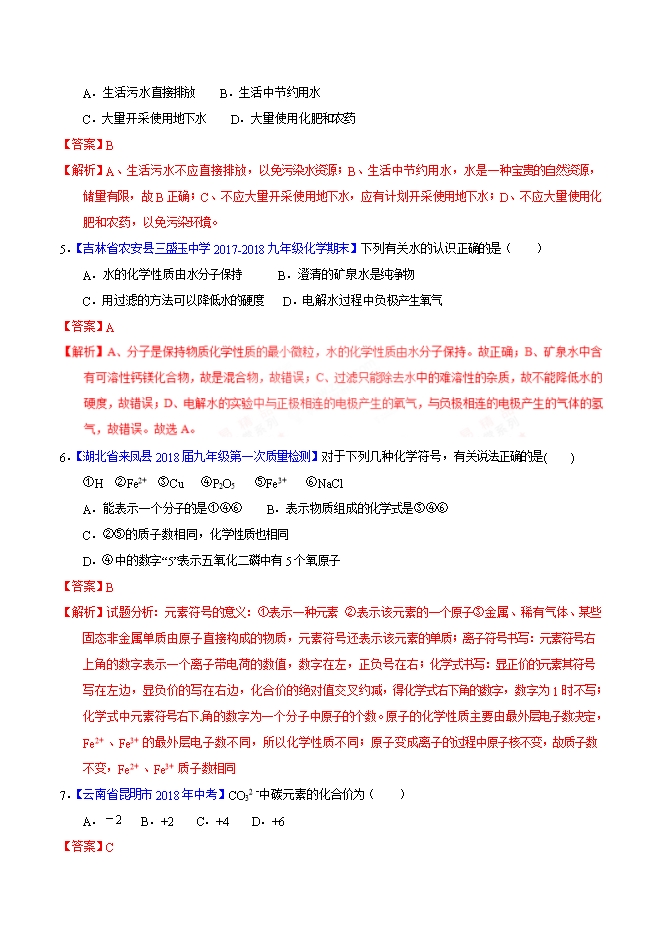 【内容简介】2019届人教版九年级化学《第四单元 自然界的水》同步单元双基双测“AB”卷(B卷)(word版含答案解析)