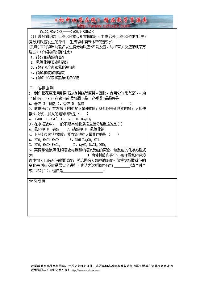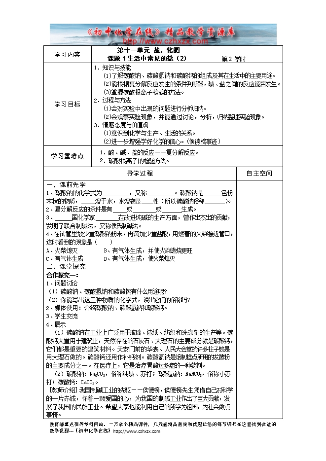 人教版初中化学《第十一单元课题1 生活中常见的盐2》导学案(一)