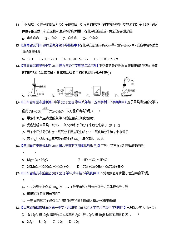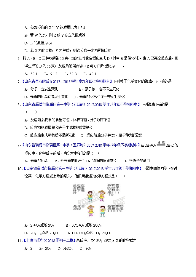 2019届人教版九年级化学《第五单元 化学方程式》同步单元双基双测“AB”卷(A卷)(word版无答案)