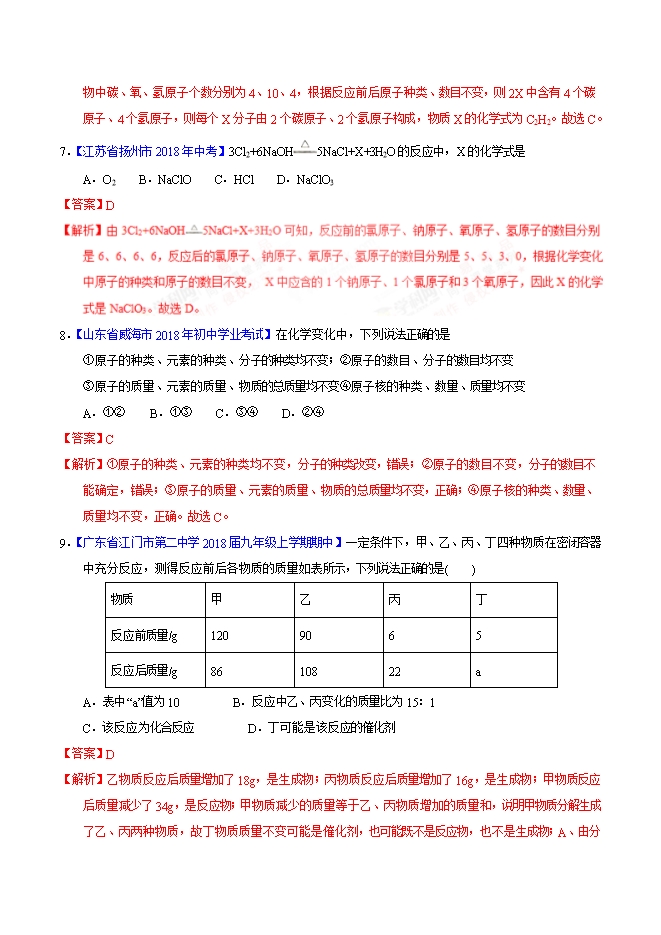2019届人教版九年级化学《第五单元 化学方程式》同步单元双基双测“AB”卷(B卷)(word版含答案解析)