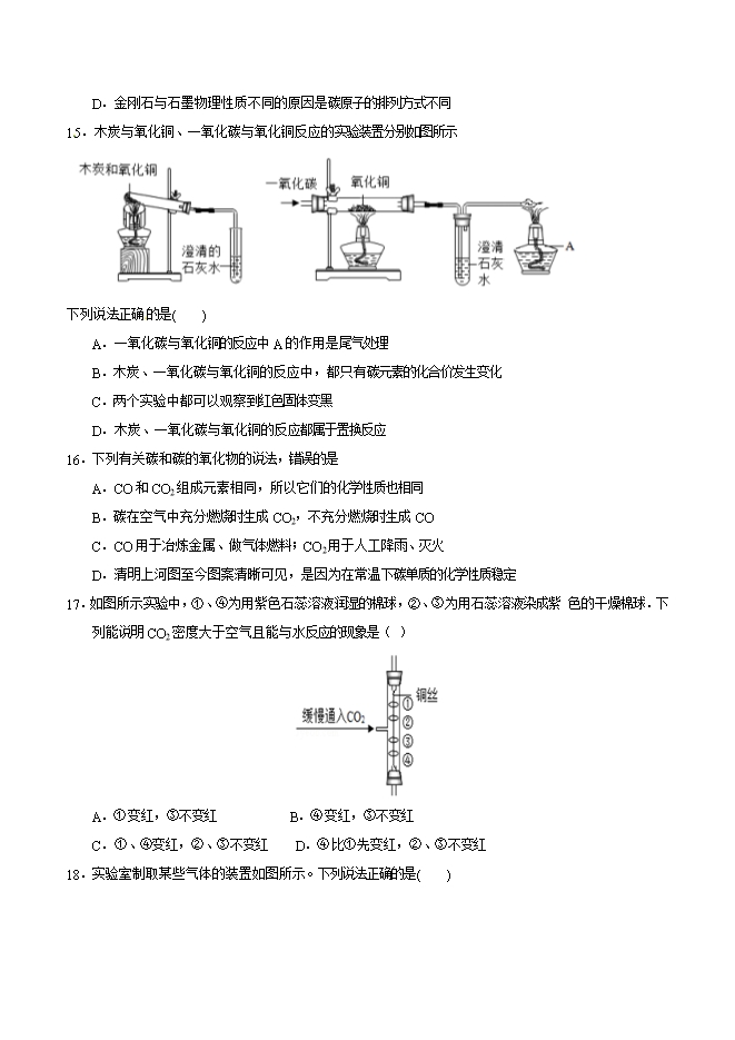 【内容简介】2019届人教版九年级化学《第六单元 碳和碳的氧化物》同步单元双基双测“AB”卷(B卷)(word版无答案)