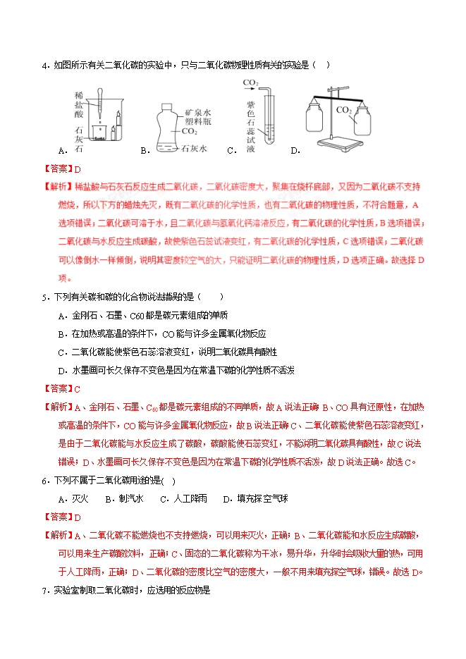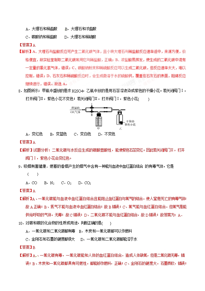 【内容简介】2019届人教版九年级化学《第六单元 碳和碳的氧化物》同步单元双基双测“AB”卷(B卷)(word版含答案解析)