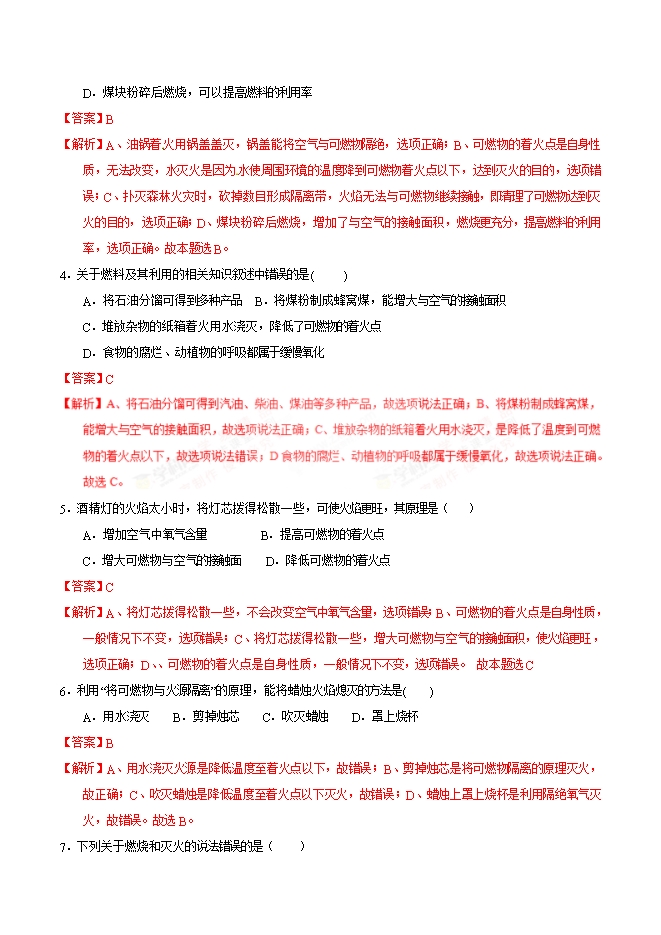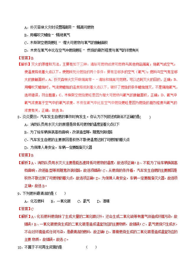 【内容简介】2019届人教版九年级化学《第七单元 燃料及其利用》同步单元双基双测“AB”卷(A卷)(word版含答案解析)