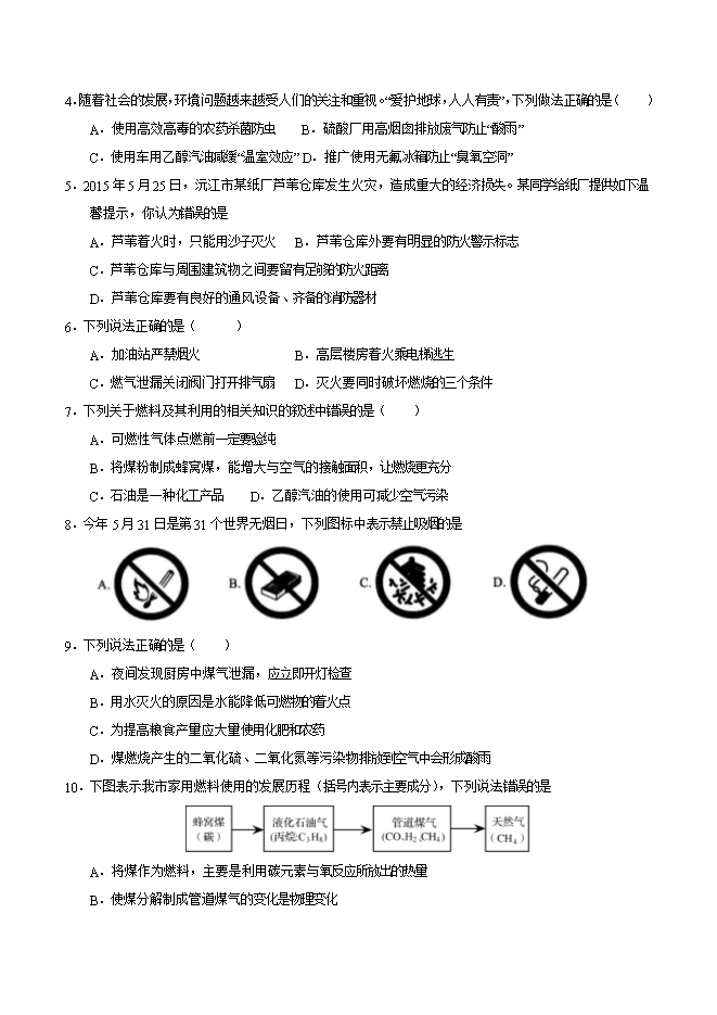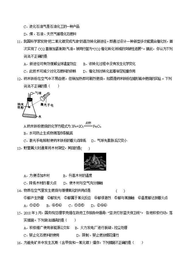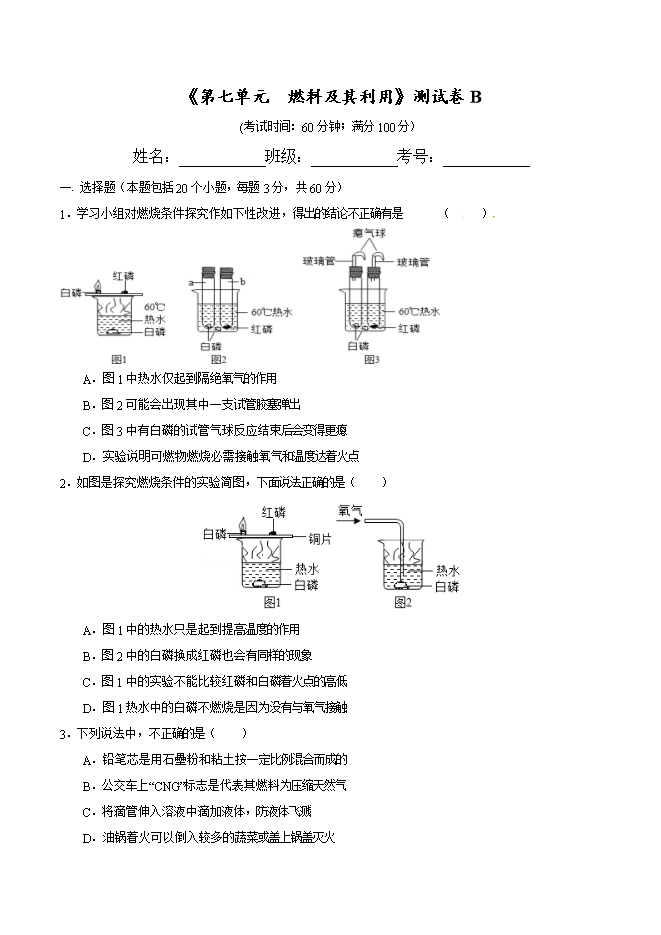 【内容简介】2019届人教版九年级化学《第七单元 燃料及其利用》同步单元双基双测“AB”卷(B卷)(word版无答案)