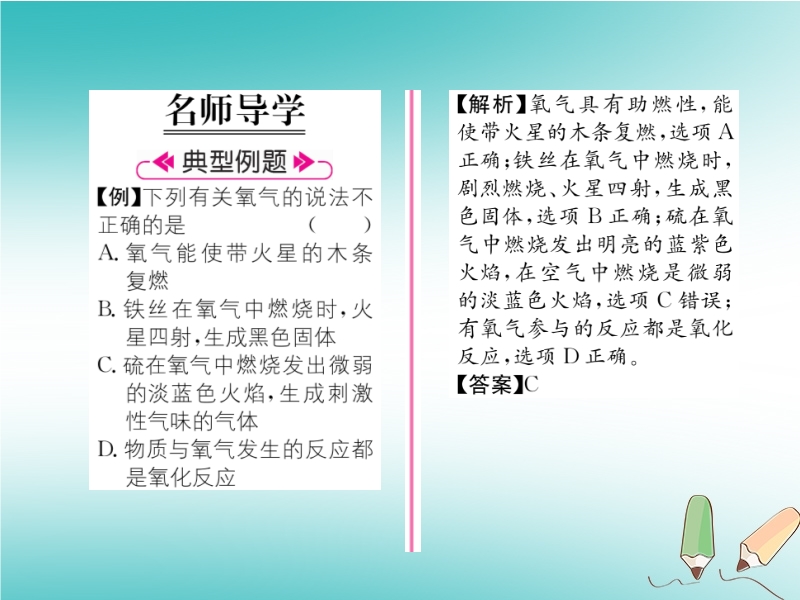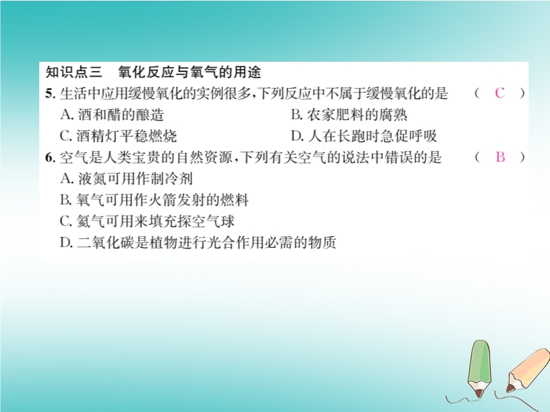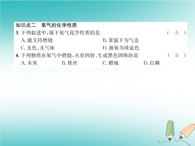 - 12082018秋沪教版九年级化学上册《第2章第1节 性质活泼的氧气《第2课时)》习题课件