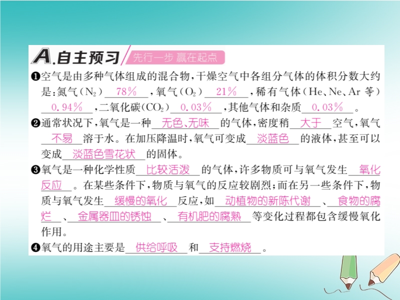 2018秋沪教版九年级化学上册《第2章第1节 性质活泼的氧气(第1课时)》习题课件