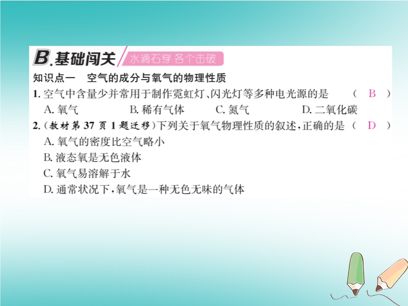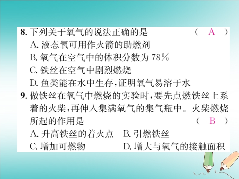 【内容简介】2018秋沪教版九年级化学上册《第2章第1节 性质活泼的氧气(第1课时)》习题课件