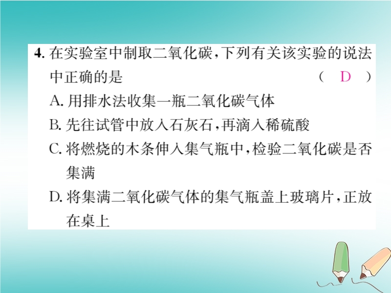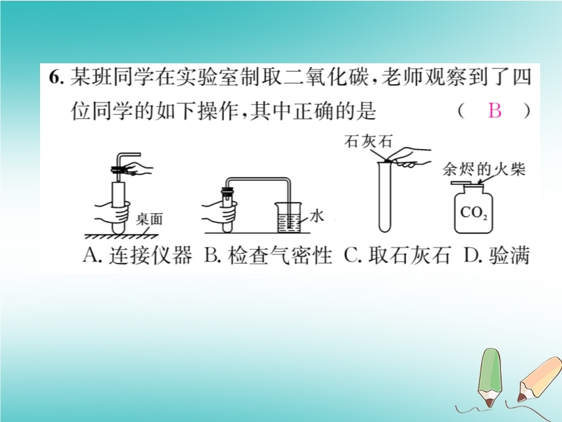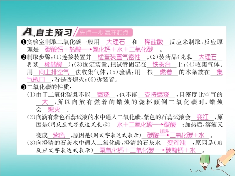 2018秋沪教版九年级化学上册《第2章基础实验2 二氧化碳的制取与性质》习题课件