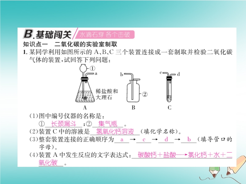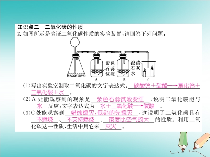 【内容简介】2018秋沪教版九年级化学上册《第2章基础实验2 二氧化碳的制取与性质》习题课件