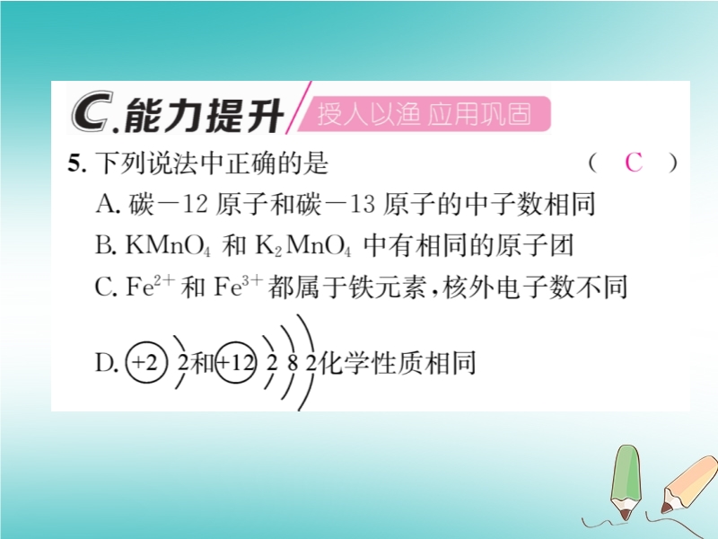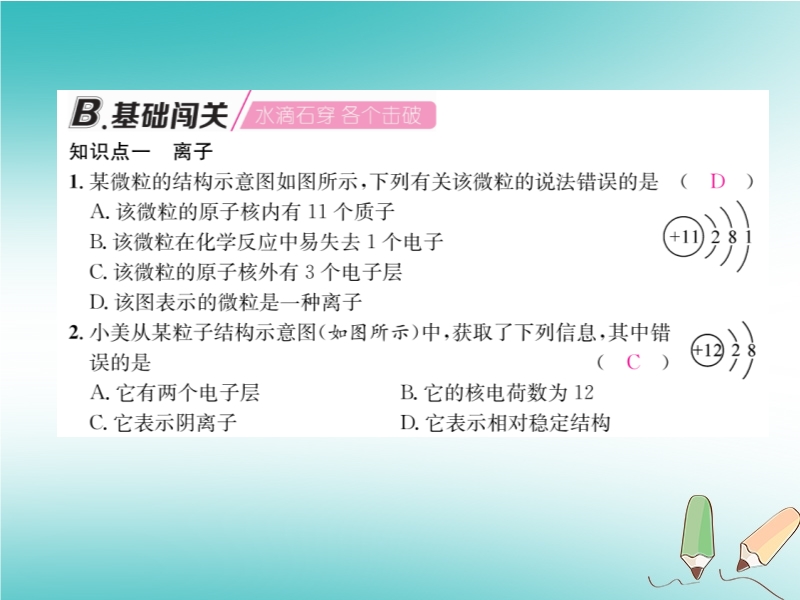 【内容简介】2018秋沪教版九年级化学上册《第3章第1节 构成物质的基本微粒(第3课时)》习题课件