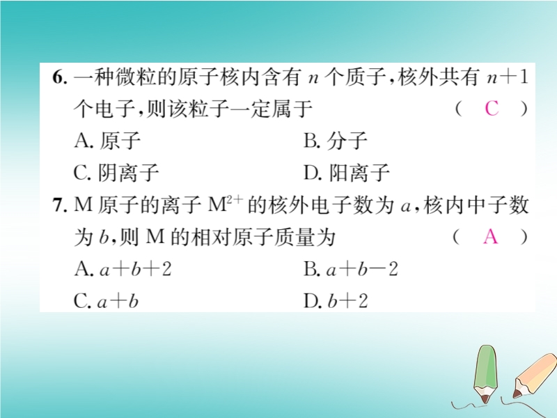 2018秋沪教版九年级化学上册《第3章第1节 构成物质的基本微粒(第3课时)》习题课件