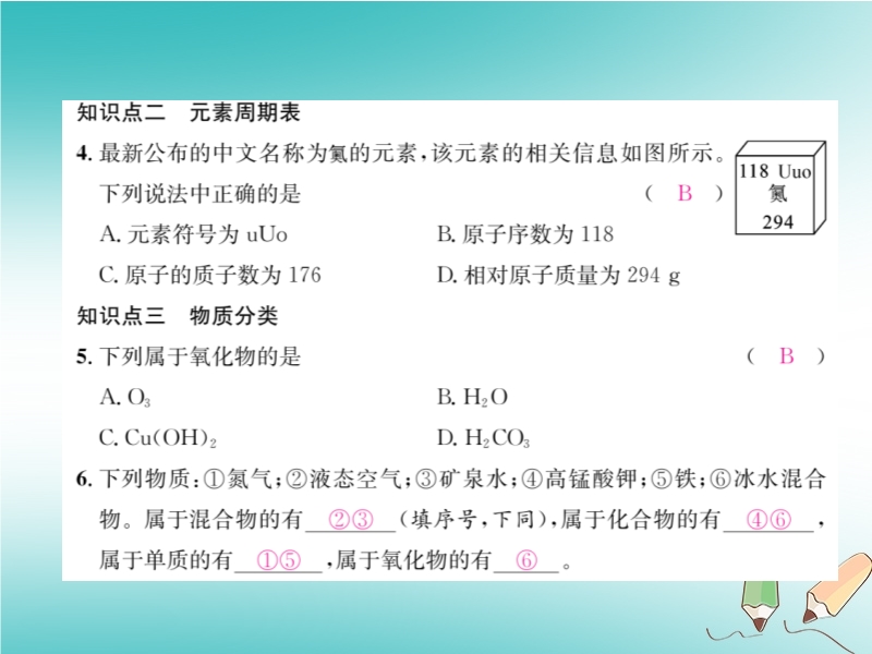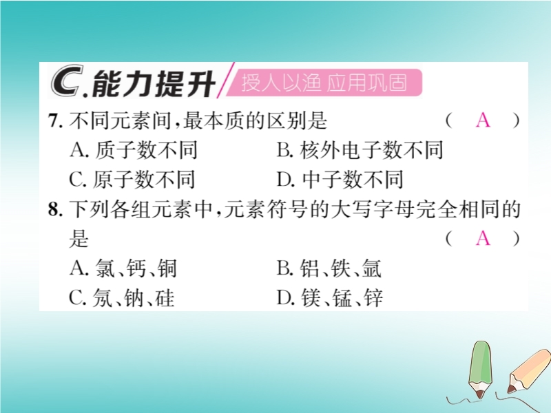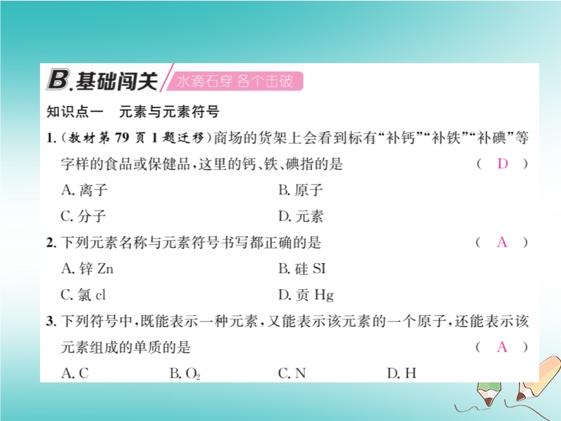 2018秋沪教版九年级化学上册《第3章第2节 组成物质的化学元素(第1课时)》习题课件