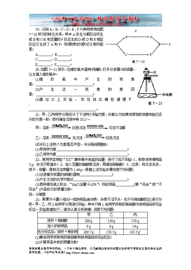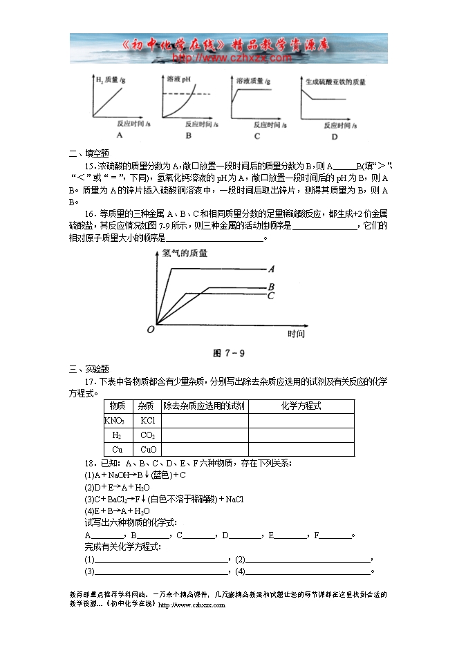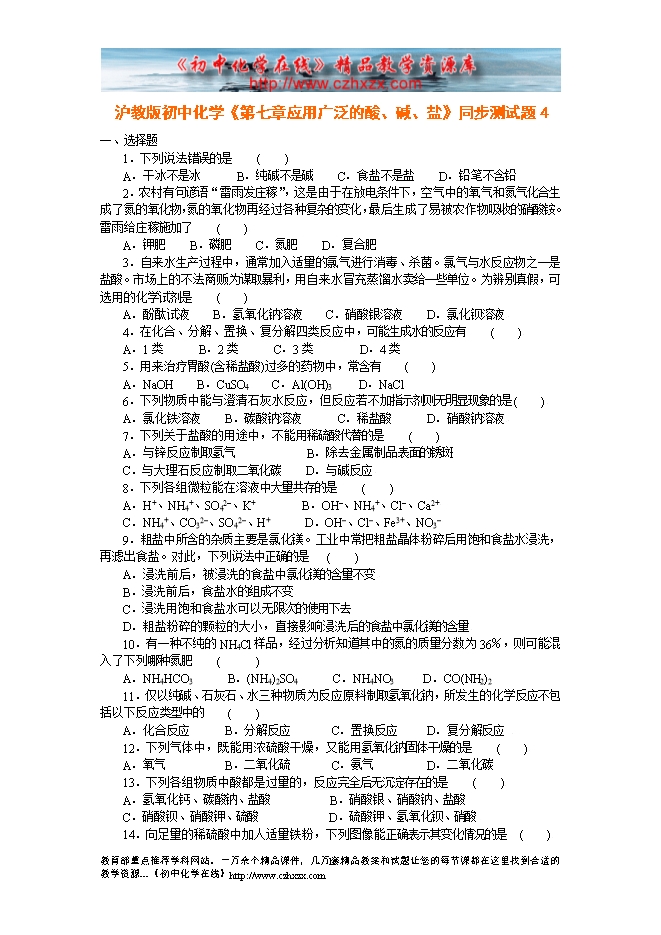 沪教版初中化学《第七章应用广泛的酸、碱、盐》同步测试题4