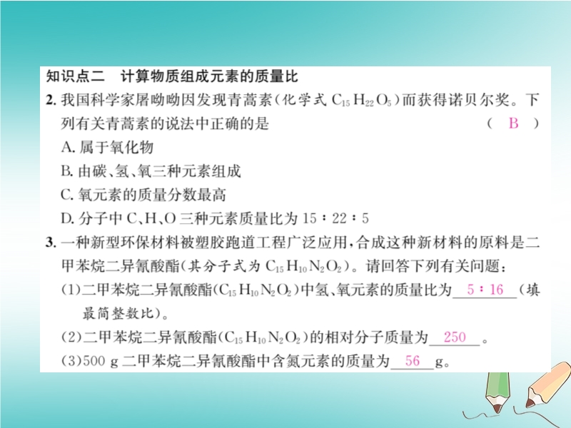 2018秋沪教版九年级化学上册《第3章第2节 组成物质的化学元素(第3课时)》习题课件