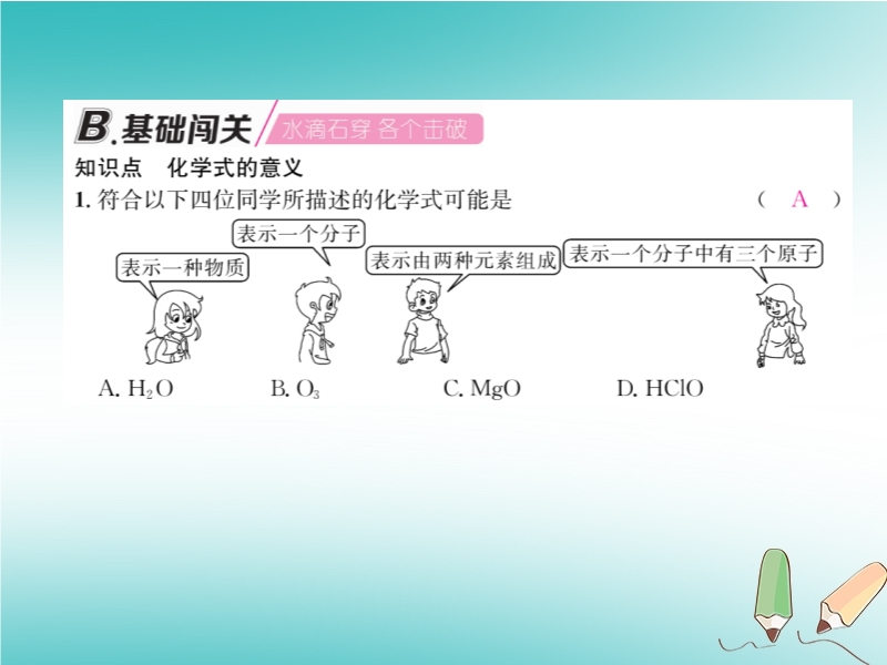 2018秋沪教版九年级化学上册《第3章第3节 物质的组成(第1课时)》习题课件