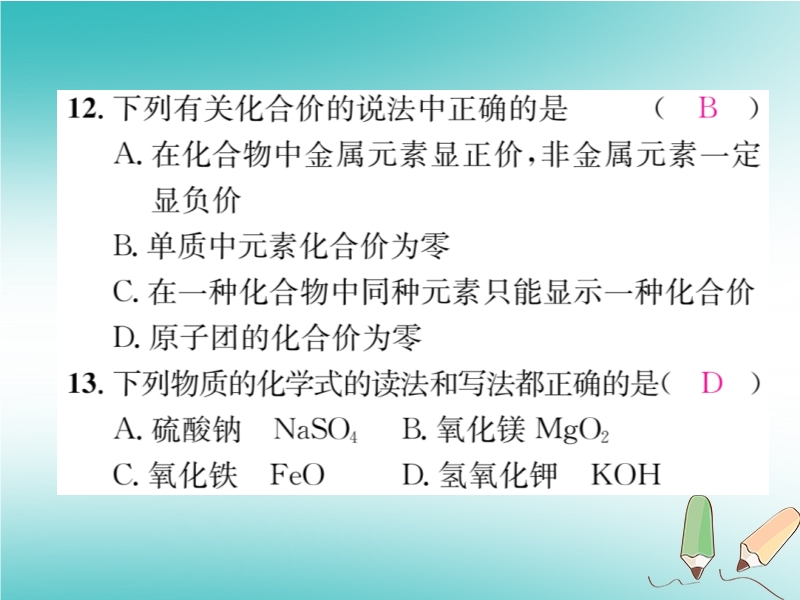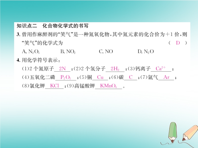 2018秋沪教版九年级化学上册《第3章第3节 物质的组成《第2课时)》习题课件