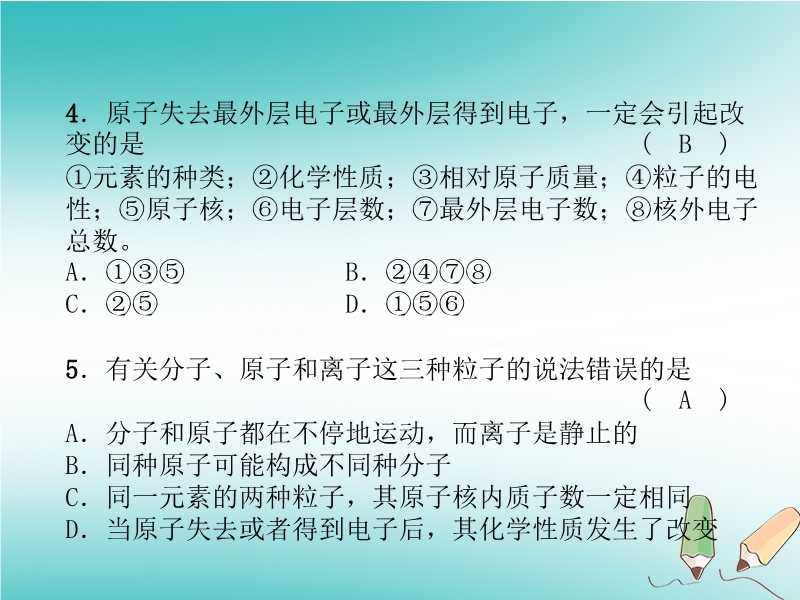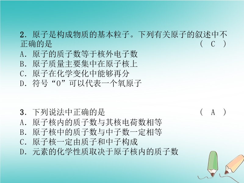 【内容简介】2018秋沪教版九年级化学上册《第3章 物质构成的奥秘》达标测试卷习题课件