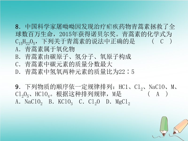 2018秋沪教版九年级化学上册《第3章 物质构成的奥秘》达标测试卷习题课件