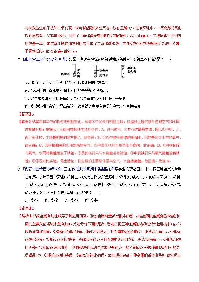 【内容简介】2019届人教版九年级化学《第八单元 金属和金属材料》同步单元双基双测“AB”卷(A卷)(word版含答案解析)
