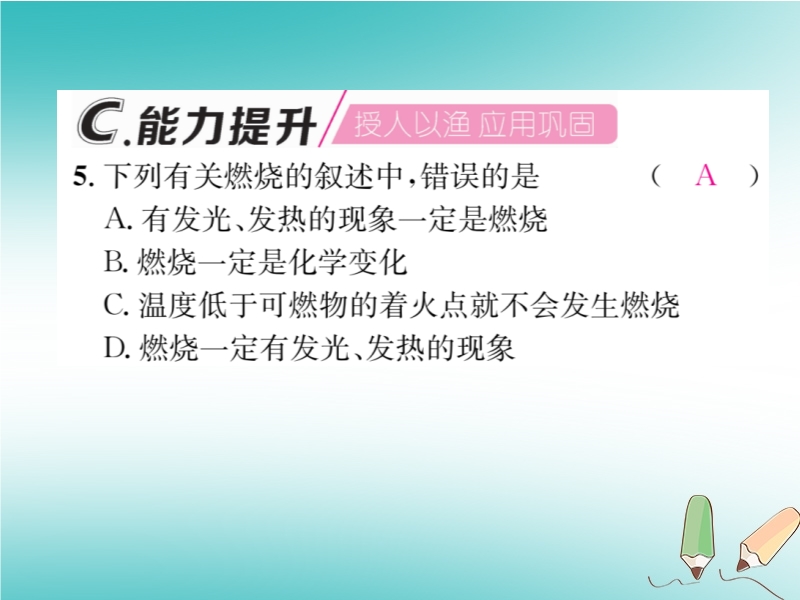 2018秋沪教版九年级化学上册《第4章第1节 常见的化学反应_燃烧(第1课时)》习题课件