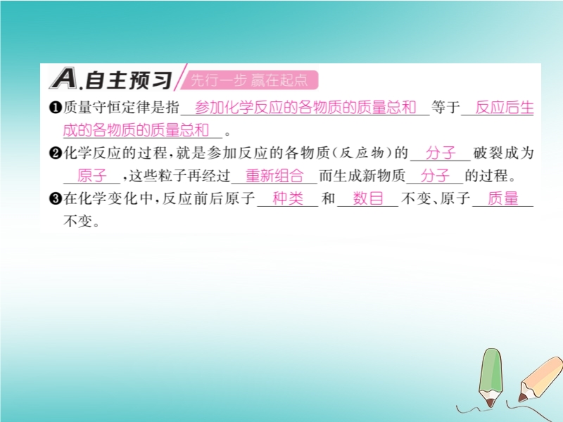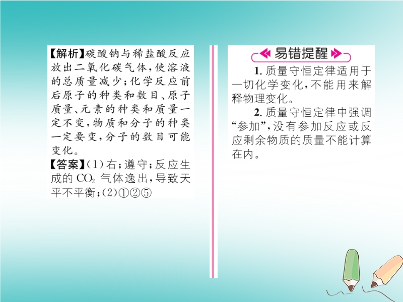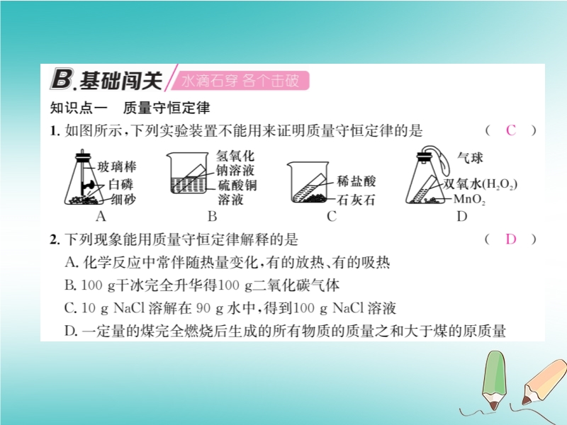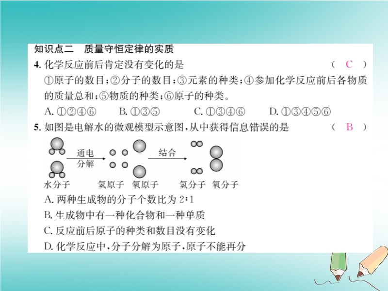 2018秋沪教版九年级化学上册《第4章第2节 化学反应中的质量关系》习题课件