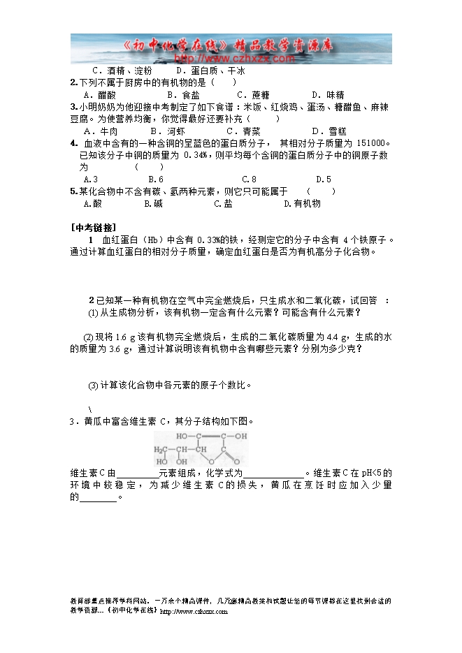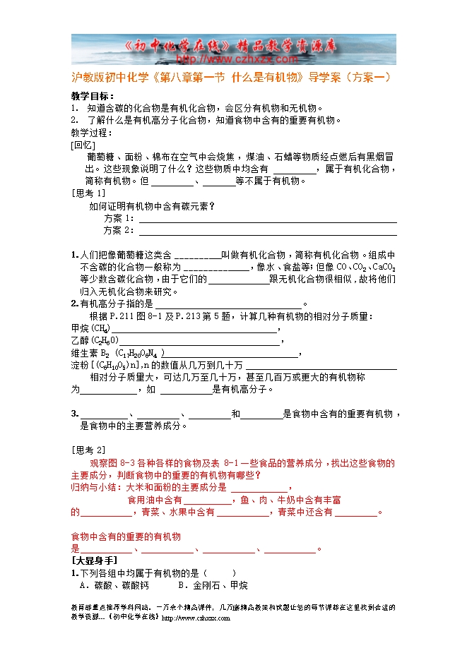 沪教版初中化学《第八章第一节 什么是有机化合物》导学案(方案一)