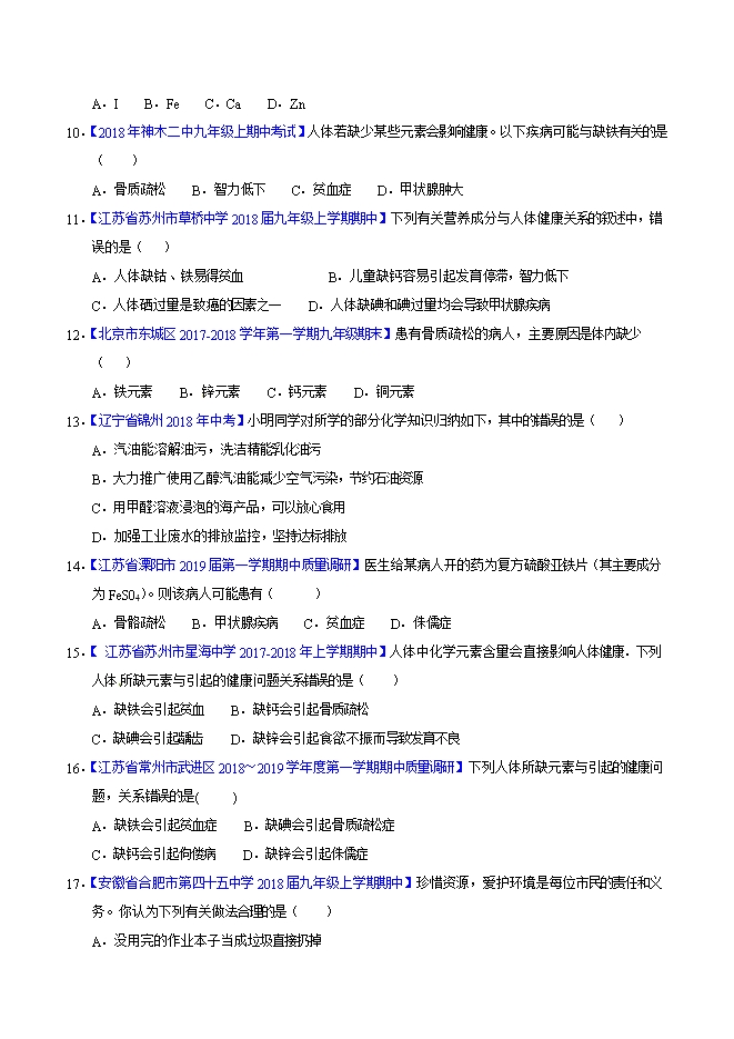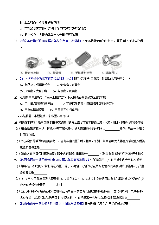 2019届人教版九年级化学《第十二单元 化学与生活》同步单元双基双测“AB”卷(A卷)(word版无答案)