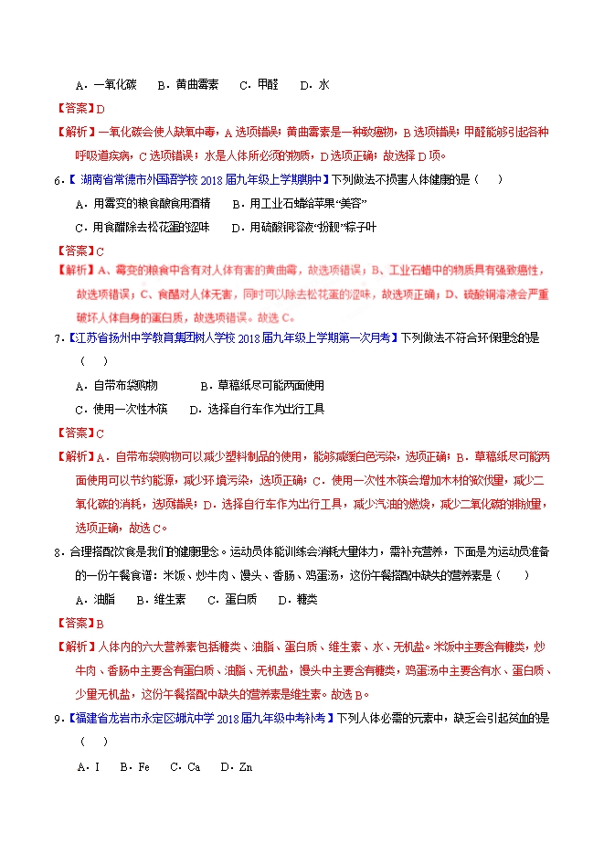 2019届人教版九年级化学《第十二单元 化学与生活》同步单元双基双测“AB”卷(A卷)(word版含答案解析)
