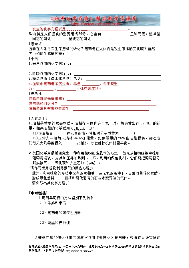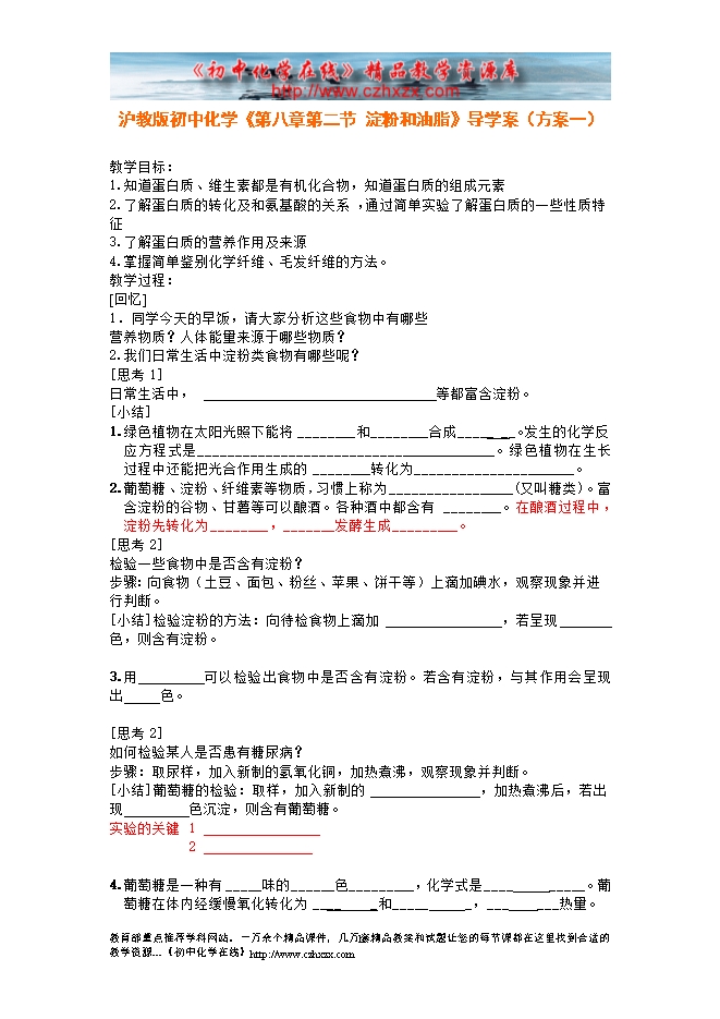 沪教版初中化学《第八章第二节 糖类 油脂》导学案(方案一)