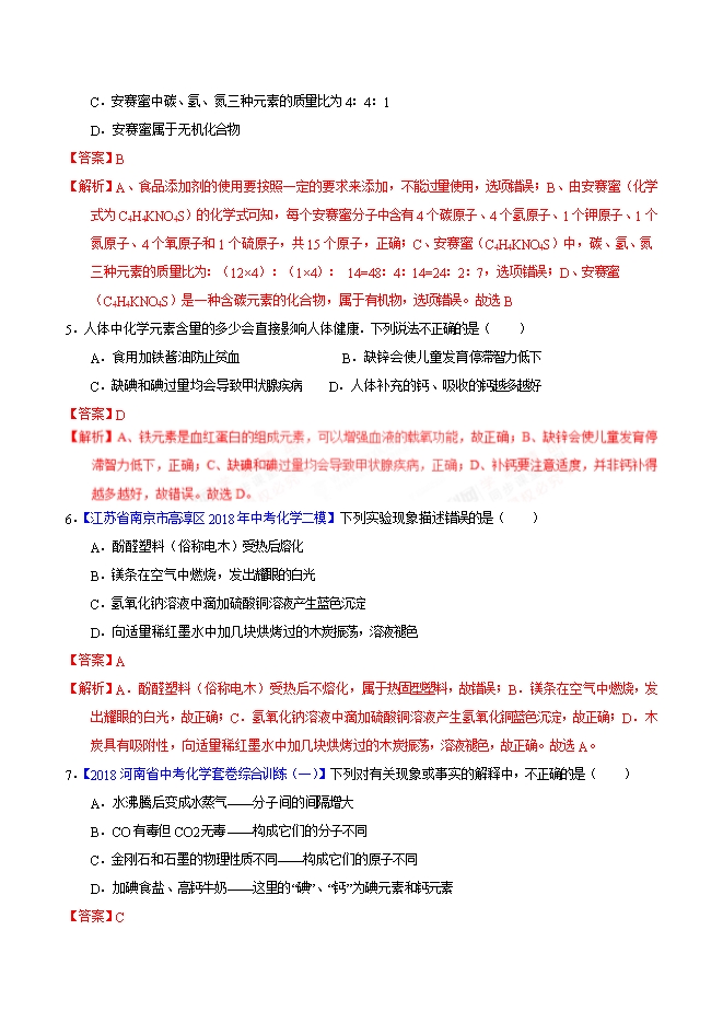 2019届人教版九年级化学《第十二单元 化学与生活》同步单元双基双测“AB”卷(B卷)(word版含答案解析)