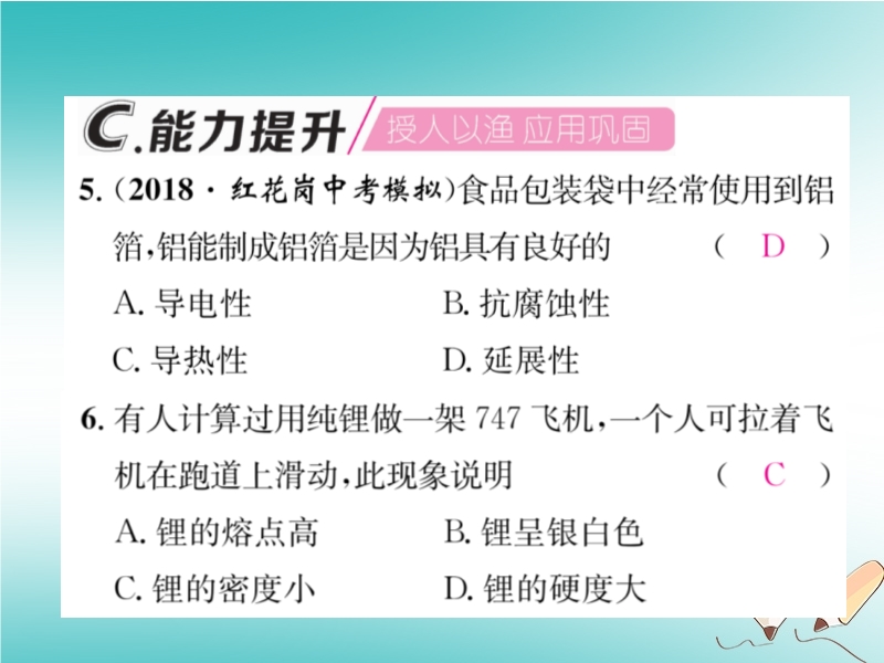 2018秋沪教版九年级化学上册《第5章第1节 金属的性质和利用(第1课时)》习题课件
