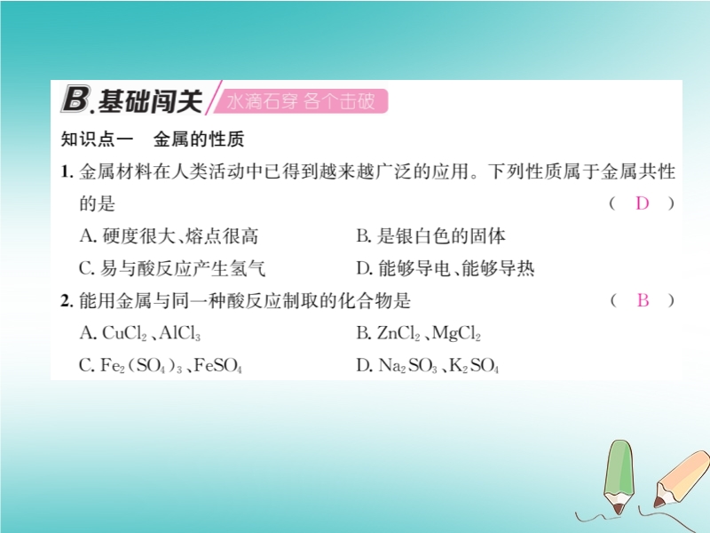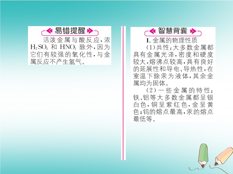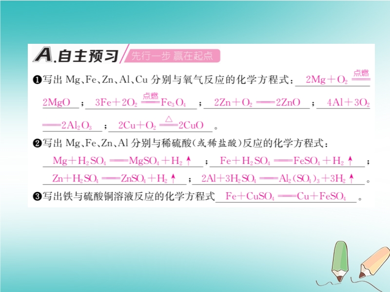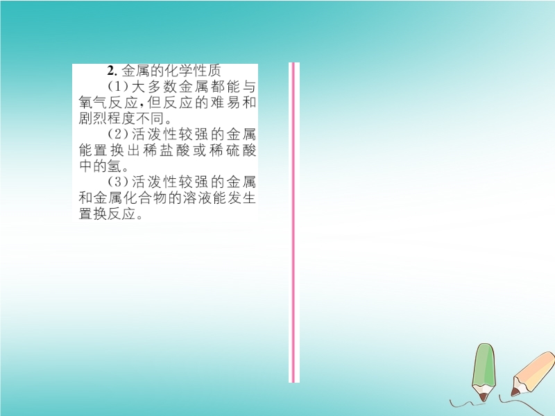 2018秋沪教版九年级化学上册《第5章金基础实验4 常见金属的性质》习题课件