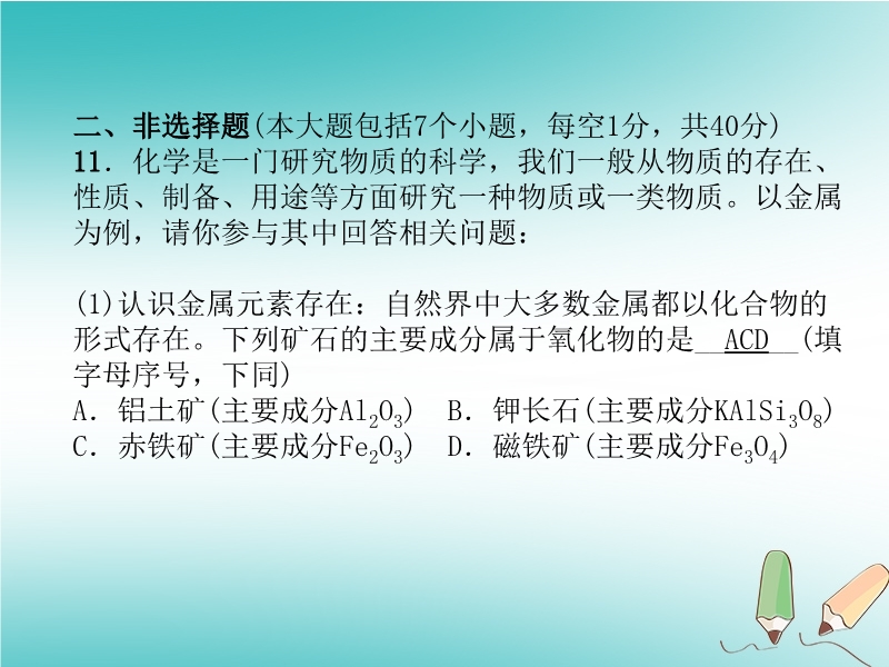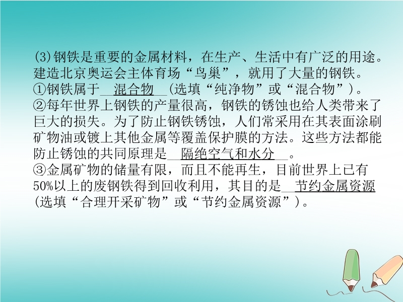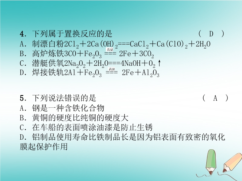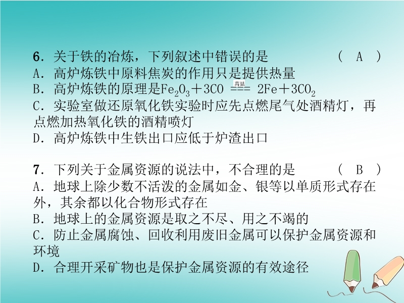 2018秋沪教版九年级化学上册《第5章 金属的冶炼与利用》达标测试卷习题课件